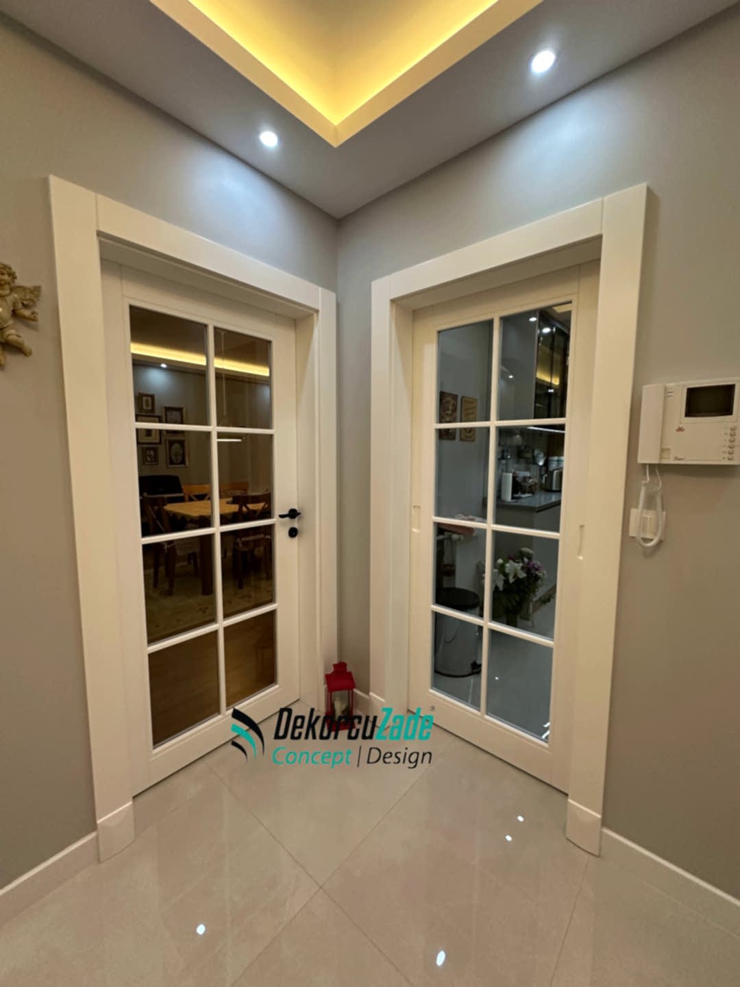 Işık geçiren zarafet. Cam detaylı lake kapılar, iç mekanlarda ferahlık ve şıklık sağlar. Temperli cam kullanımıyla güvenlikten ödün verilmez.